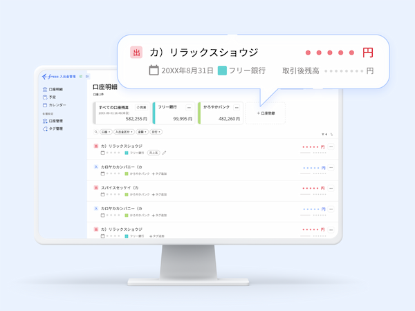 入出金明細を自動取得。リアルタイムな入出金管理がサービス1つで完結します。