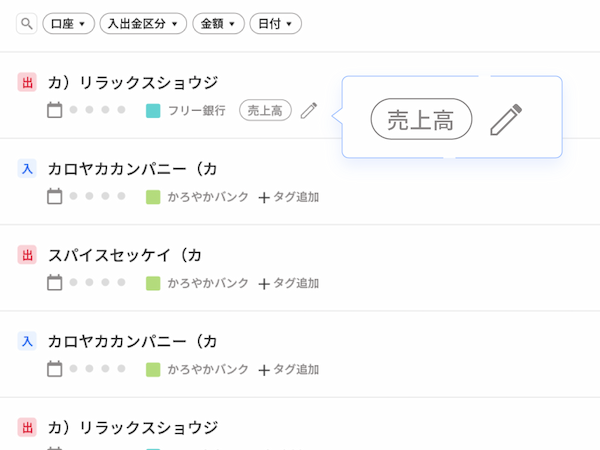 残したメモや摘要欄を使って、簡単に過去の明細を検索することができます。