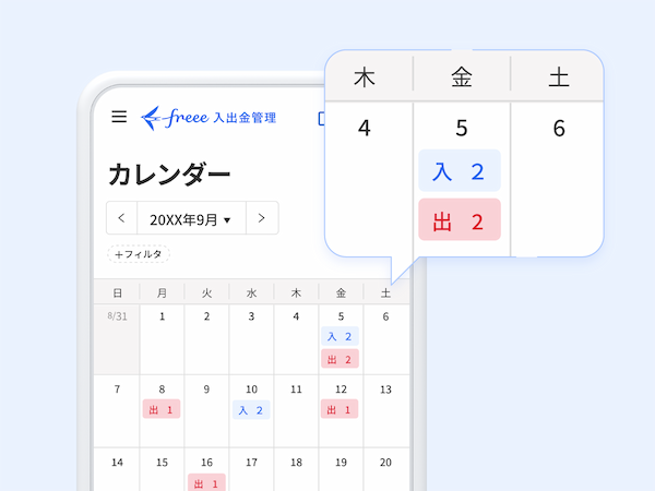 カレンダー画面で簡単に予定件数や予定金額をチェックできます。