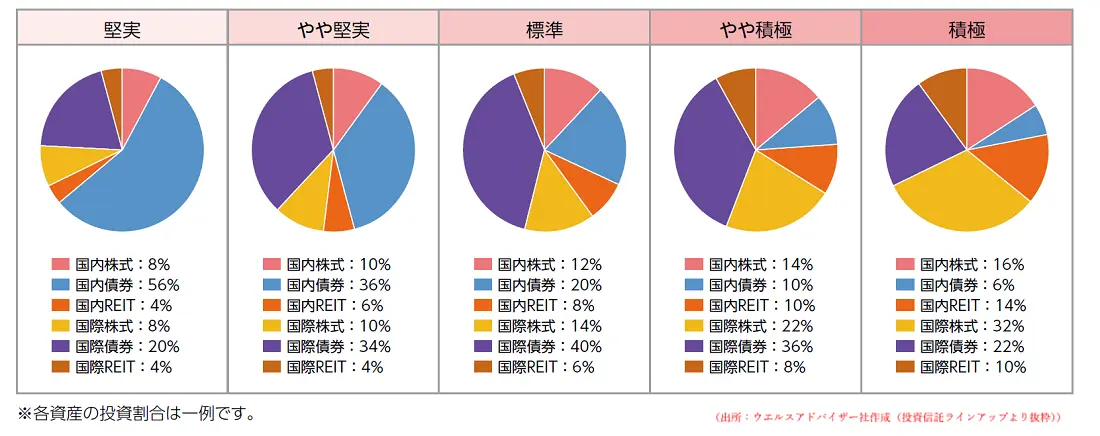 バランス型の株式投資信託、債券型の公社債投資信託等がおすすめです。