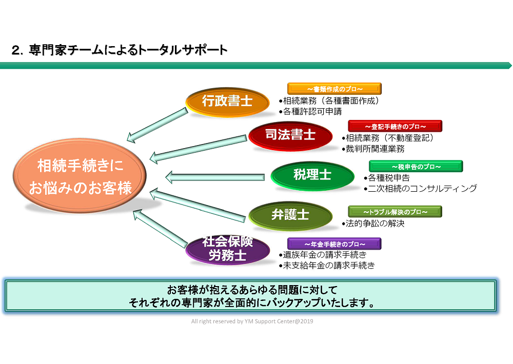 YMサポートセンターでは、相続に精通する提携先専門家をご紹介することにより、